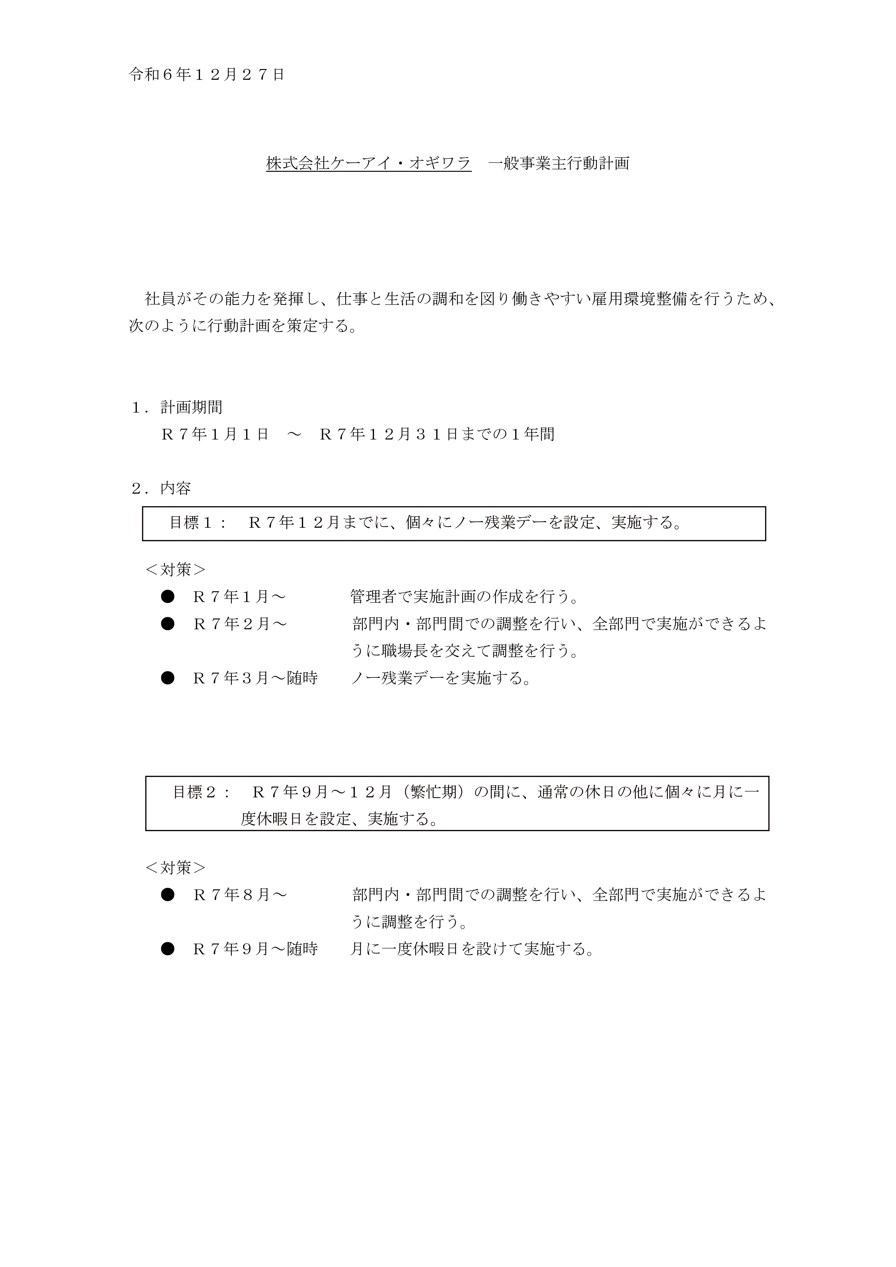 次世代育成支援対策推進法に基づく一般事業主行動計画